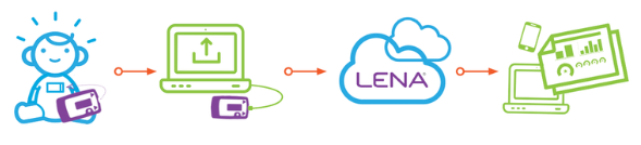 After a LENA day, the audio file from the device gets uploaded to LENA, where computer software processes the file and turns it into numerical data.
